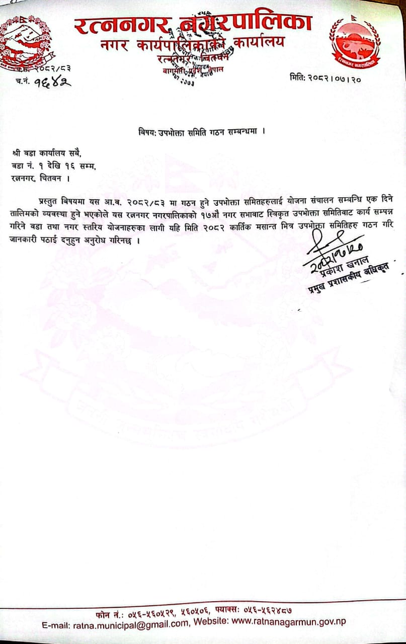 रत्ननगर नगरपालिका, बागमती प्रदेश, नेपाल सरकार