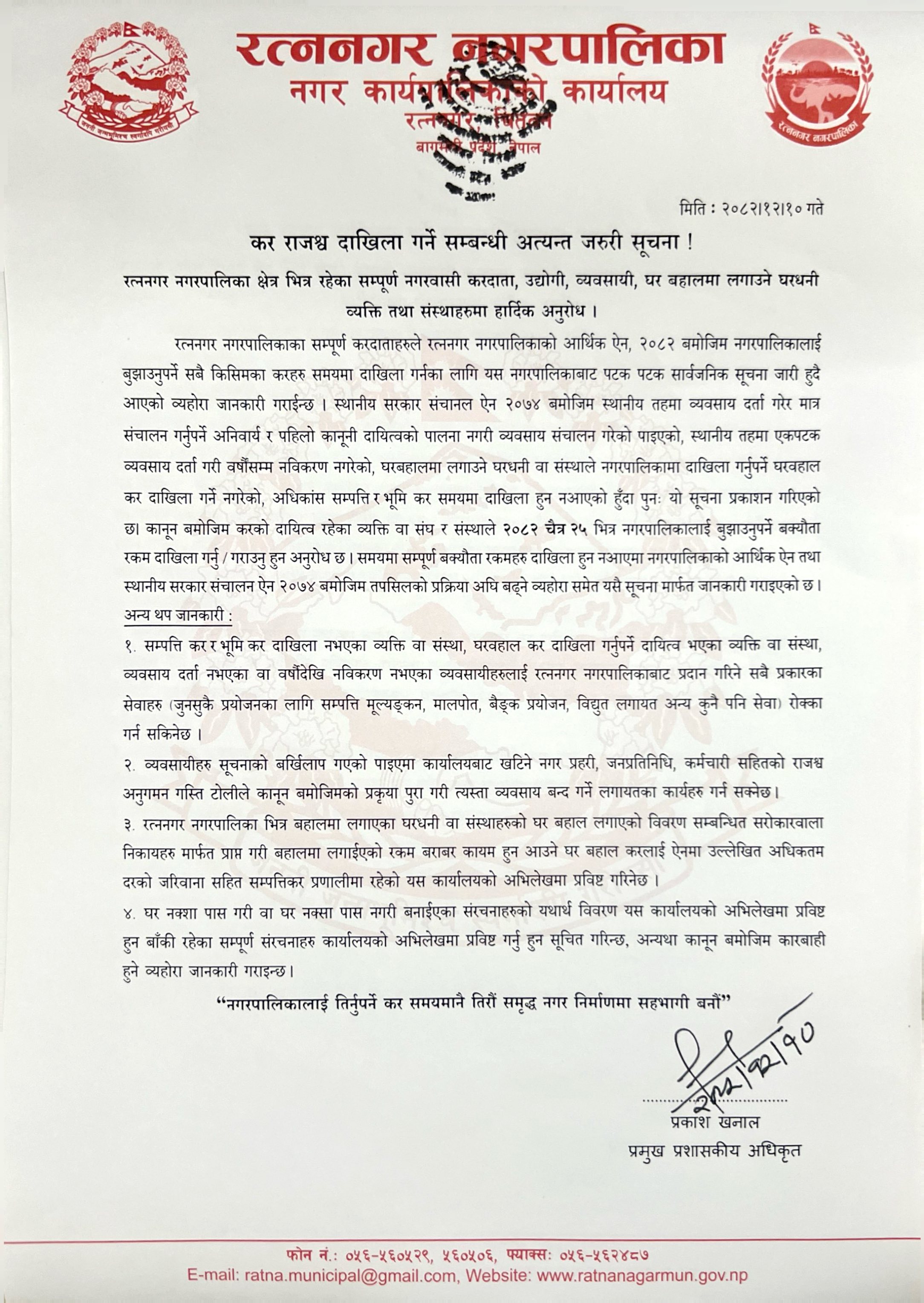 कर राजश्व दाखिला गर्ने सम्बन्धी अत्यन्त जरुरी सूचना !!!