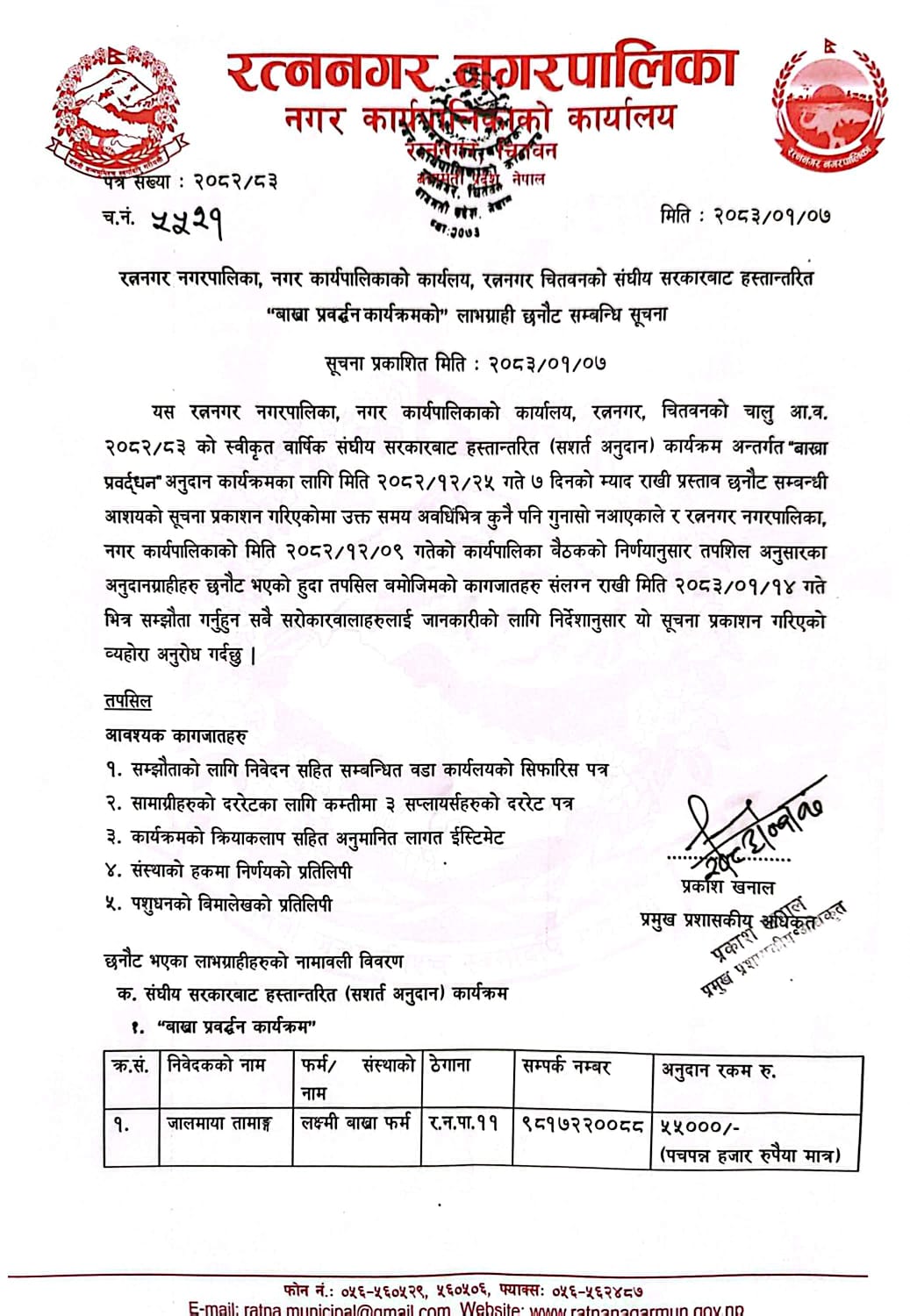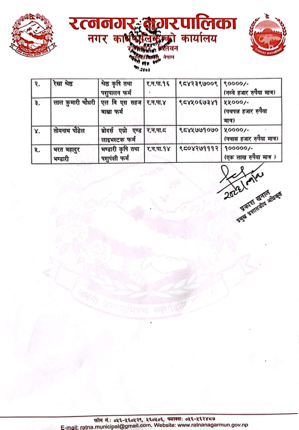 रत्ननगर नगरपालिका, बागमती प्रदेश, नेपाल सरकार
