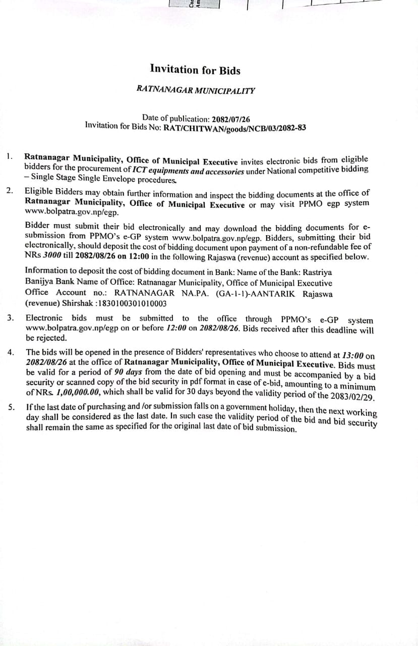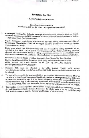 सार्वजनिक खरिद/बोलपत्र सूचना