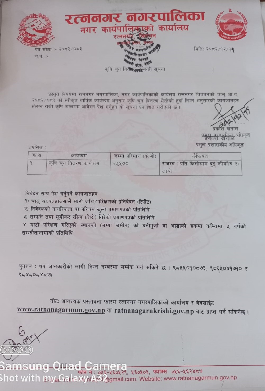 कृषि चुन वितरण सम्बन्धी सूचना !!!