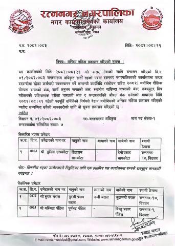 अन्तिम नतिजा प्रकाशन गरिएको सूचना !!!