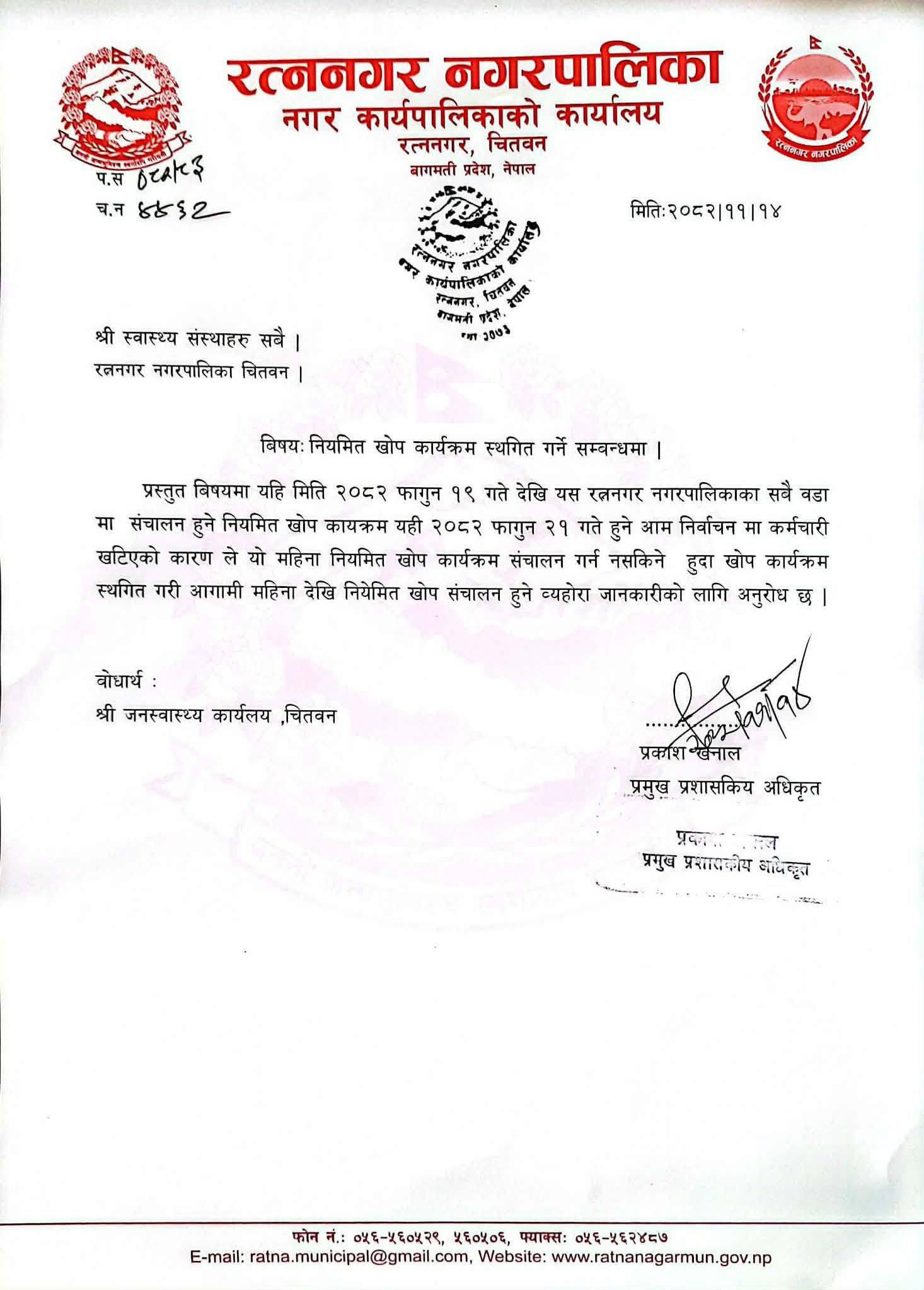 रत्ननगर नगरपालिका, बागमती प्रदेश, नेपाल सरकार