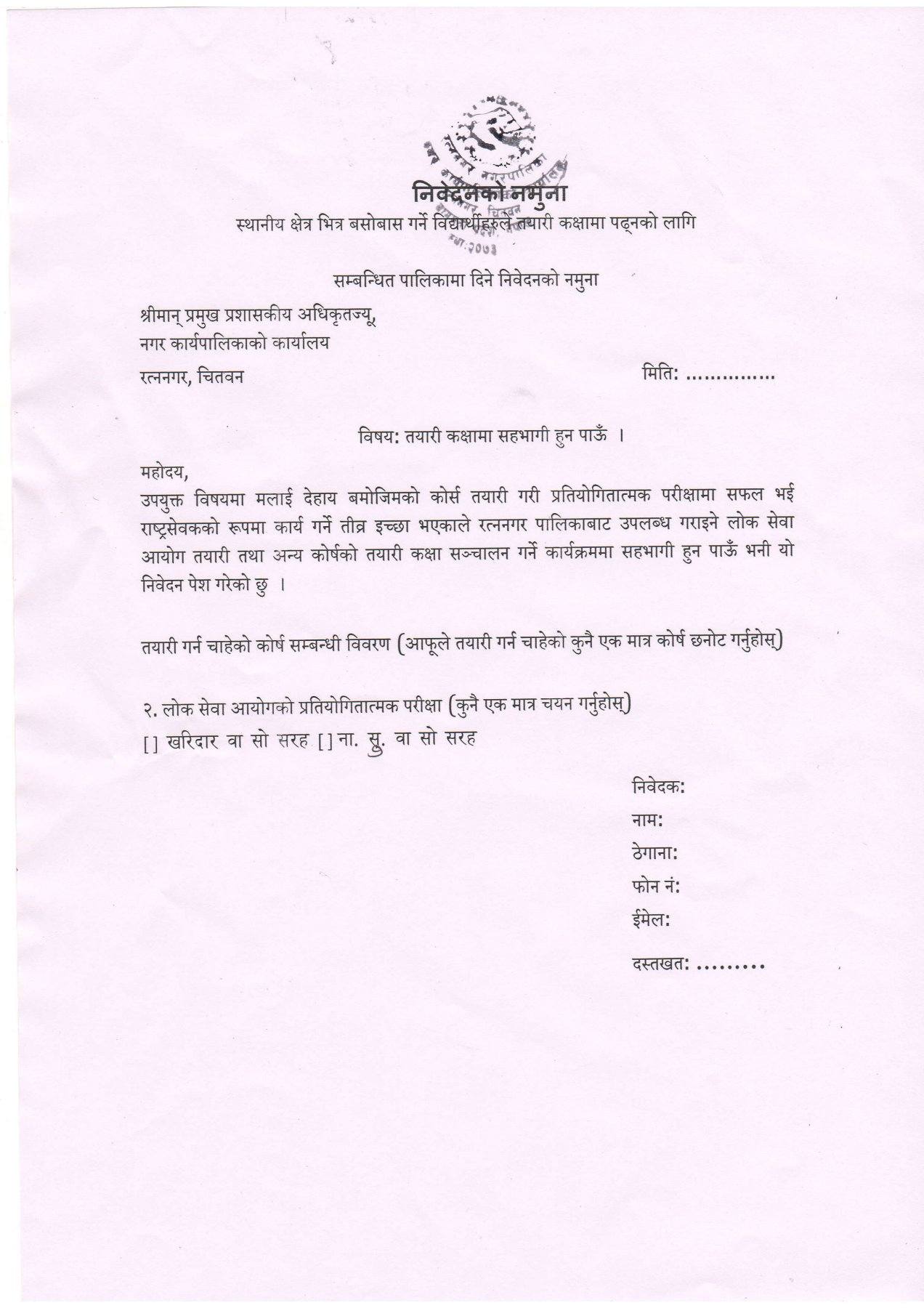 निवेदनको ढाँचा