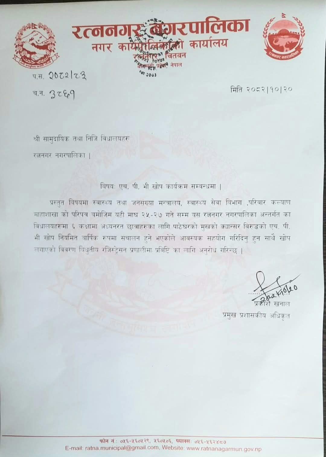 » विद्यालयमा HPV खोप कार्यक्रम सन्चालन सम्बन्धमा!!!